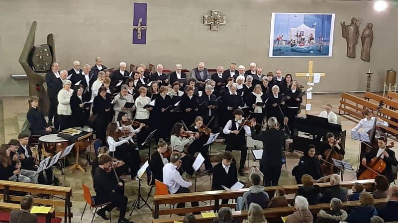Das gesamte Ensemble bei der Aufführung des Oratoriums „Der barmherzige Samariter“ am 21. März 2026 in der Bonifatiuskirche in Tauberbischofsheim
